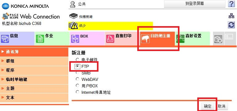 3)選擇FTP,點(diǎn)擊“確認(rèn)”,確定進(jìn)入下一步。