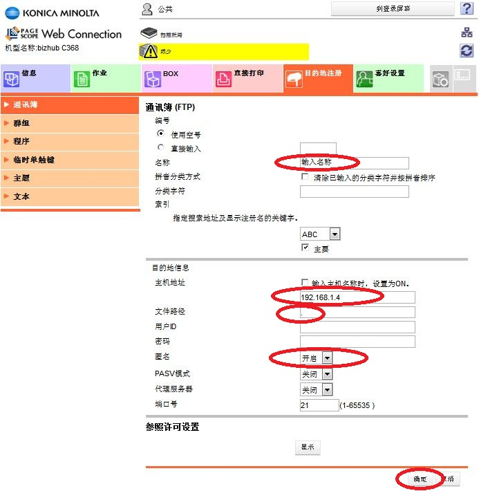 1)在IE地址欄中輸入機(jī)器的IP地址進(jìn)入Web Connection