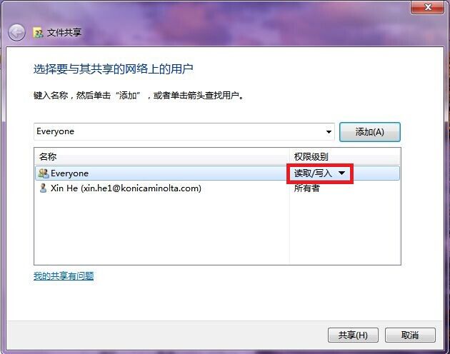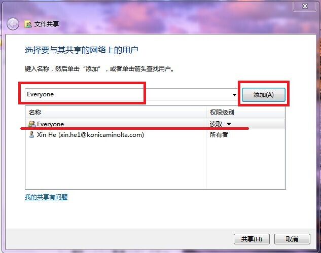 1)PC端設(shè)置共享文件夾,共享設(shè)置everyone的讀取和寫入權(quán)限